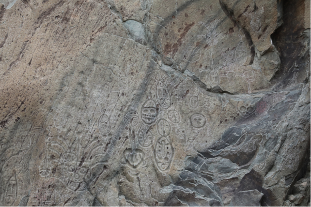 Helan Mountain rock art stretches for more than 250 kilometers along the eastern foothills of the mountains. The site was discovered in the middle of the 20th century, and the main distribution area is from Shizui Mountain in the north to the Zhongwei area in the south. More than 20 dense rock art sites and more than 40,000 single rock paintings have been discovered. Among them, the most concentrated and representative rock paintings are located in Helankou in the middle of Helan Mountain, where the number of paintings is nearly 6,000, including 712 human face petroglyphs, which is the proportion of rock paintings with a high proportion of human face portraits distributed in the world. These rock carvings were created between 10,000 and 3,000 years ago and were carved by early ancient ancestors to later nomadic tribes such as the Xiongnu, Xianbei and Qiang tribes. They created petroglyphs using simple stone or metal tools carved and carved on steep cliff faces to capture scenes of daily life, rituals, and mythology, which are important testimonies of human development. The primary motifs of the rock paintings include animals such as deer, horses, sheep, and tigers. These figures are typically depicted in dynamic poses, portraying scenes of hunting or herding activities. Figures appear in groups, engaged in dances, battles, or some kind of religious ritual. An iconic work, the "Sun God," depicts a human-like face radiating light, symbolizing sun worship and nomadic reverence for the forces of nature.